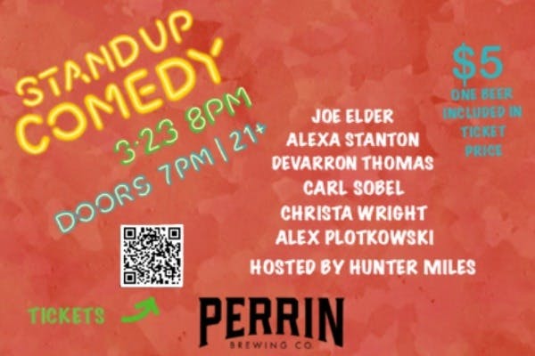 It’s a night full of “Liquid Laughs-manship” at Comedy Night at Perrin! Your $5 ticket is good for one pint of Tier 1 or 2 beer and admission to the show featuring this fantastic lineup of local comedians including: